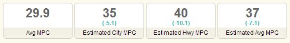 After the first nine fill-ups, I’ve been disappointed. I was averaging 29.9 MPGs, WAY below the EPA estimates.